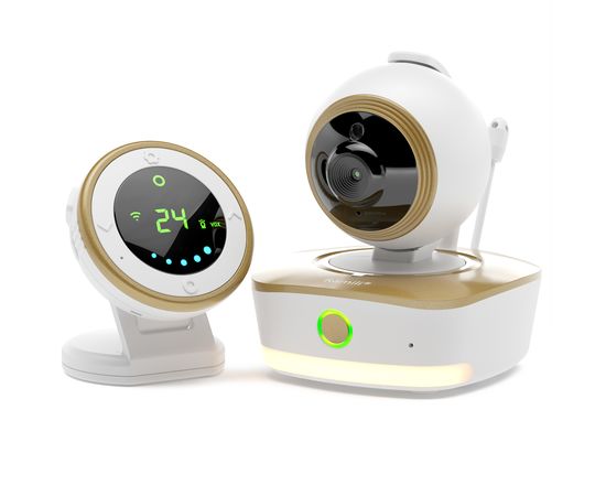 - Мягкий LED-ночничок на камере, как и колыбельные мелодии, помогает малышу отвлечься и не тревожиться. Управляется с родительского блока или в приложении. Может включаться при обнаружении звука/плача.