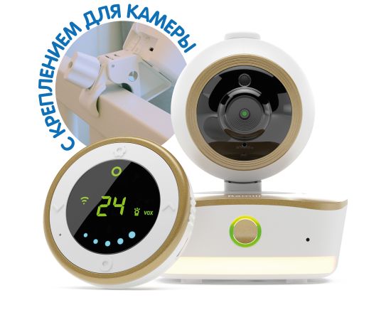 - Возможность подключения второй камеры для одновременного контроля двух комнат или контроля малыша с разных ракурсов (приобретается отдельно).