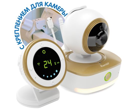 В комплект входит крепление Ramili RC, с помощью которого можно закрепить камеру на предметах мебели и коляске (во избежание несчастного случая обязательно убедитесь, что ребенок не способен дотянуться до камеры и кабеля питания). Ramili Baby RV1800RC – это инновационная цифровая видеоняня от известного производителя для наблюдения за малышом с экрана смартфона или планшета через интернет. Оснащена дополнительным родительским блоком, который соединяется с камерой по радиосвязи на расстоянии до 800 метров при оптимальных условиях. Камера видеоняни подключается к домашней сети Wi-Fi, и родители могут наблюдать за малышом в мобильном приложении на неограниченном расстоянии от дома, где есть доступ к сети интернет.