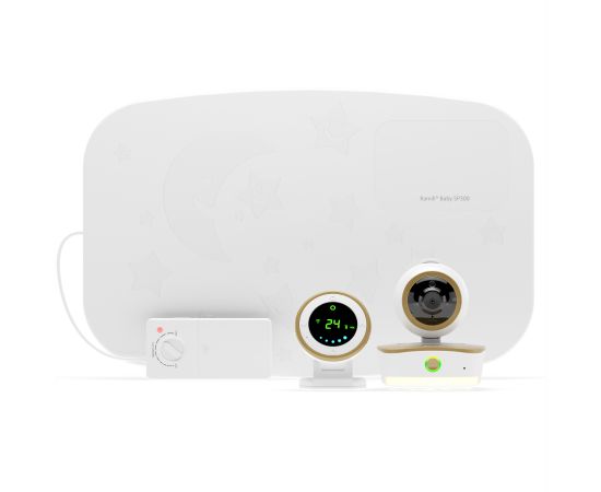 Монитор дыхания Ramili Baby RV1800SP и радио-видеоняня представляет из себя цифровую систему, в комплект которой включен специальный беспроводной коврик с высокочувствительными сенсорами. Коврик располагается под матрасиком детской кроватки и фиксирует движения, создаваемые в процессе дыхания малыша. Если такие движения не фиксируются, то на родительский блок приходит сигнал тревоги. Сенсорный коврик Ramili Baby SP300 связан по беспроводной связи с камерой, а камера с родительским блоком.