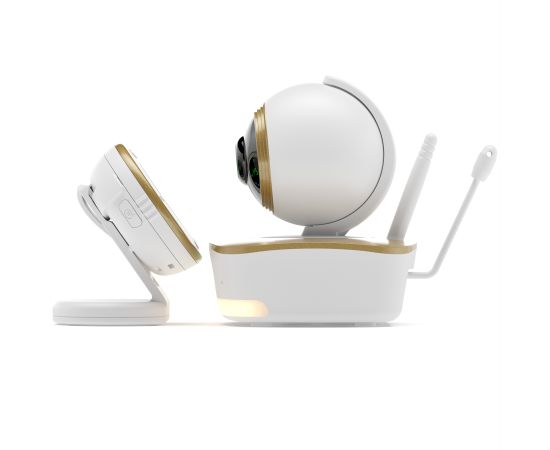 Двухрежимная камера передает сигнал родительскому блоку и доступна в приложении при подключении к домашнему Wi-Fi.