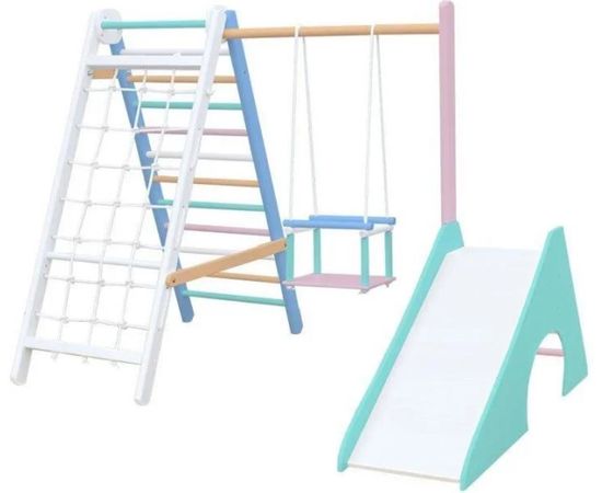 Детский спортивный комплекс Appollo Sofia оснащен всем, что так любят дети, но при этом не занимает много места в доме. В комплекте идут: деревянная детская лесенка; сетка для лазанья;безопасные небольшие качели; деревянная горка. Лестница и сетка установлены под углом друг к другу , это облегчает процесс подъема для малышей и делает его более безопасным. Комплекс выполнен из качественного дерева: сосны и березы высшего сорта , прошедшего специальную качественную заводскую обработку. Покрыт качественной краской не имеющей запаха. Цветовая гамма отвечает современным стандартам и дизайну детских комнат, не раздражает глаз и будет по достоинству оценена малышами.