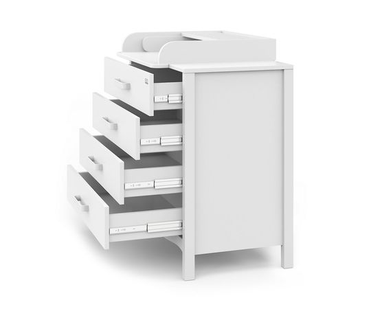 - Раскладной пеленальный столик можно установить слева, справа или по центру, он легко снимается, не оставляя никаких следов на столешнице, получается обычный комод.