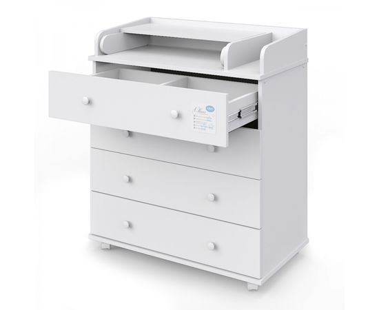 Раскладной пеленальный комод шириной 80 см с 4-мя ящиками на шариковых направляющих.