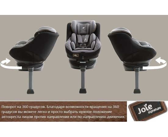 - Поворотное автокресло Joie spin 360™ signature для детей от рождения до 4 лет (18 кг). Обеспечивает поворот чаши сидения на 360° на собственной базе.