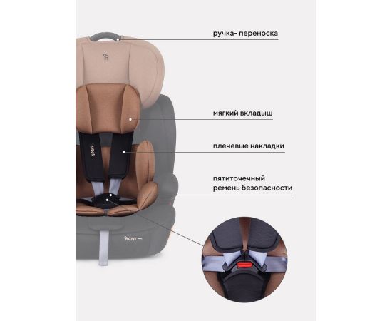 - 5-точечные ремни безопасности не дадут выскользнуть малышу при ударе, а мягкие плечевые накладки подарят дополнительный комфорт и обеспечат надежное прилегание ремней