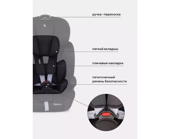 - 5-точечные ремни безопасности не дадут выскользнуть малышу при ударе, а мягкие плечевые накладки подарят дополнительный комфорт и обеспечат надежное прилегание ремней
