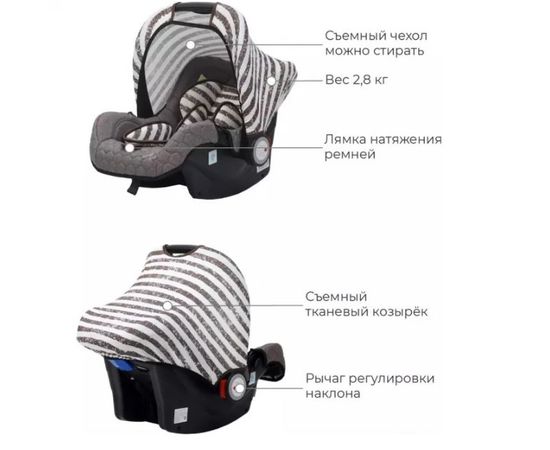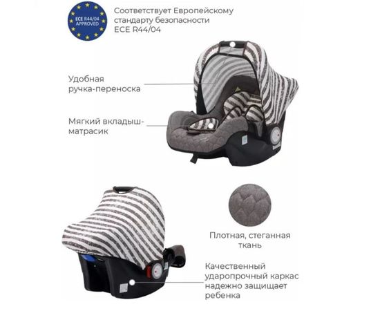Имеет внутренние 3-х точечные ремни безопасности с плечевыми накладками (уменьшают нагрузку на плечи малыша).