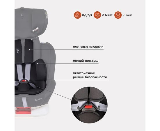 - 5-точечные ремни безопасности не дадут выскользнуть малышу при ударе, а мягкие плечевые накладки подарят дополнительный комфорт и обеспечат надежное прилегание ремней