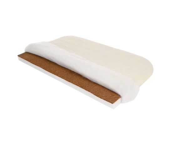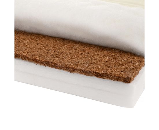 Недорогой ортопедический беспружинный матрас в приставную кроватку BamBola Baby из экологически чистых материалов. Основа матраса – плита из гипоаллергенного, прекрасно сохраняющего форму материала - Hollcon. В качестве настилочного материала с одной стороны – кокосовая койра, придающая матрасу жесткость. На 100% натуральный материал, экологически чистый и долговечный, один из лучших, которые может предложить нам природа. Оба наполнителя – холлкон и латексированная кокосовая койра – совершенно не впитывают влагу и запахи, не вызывают аллергии, не гниет, отлично пропускает воздух и регулирует температуру, к тому же не деформируется. А самое главное – идеально создают прекрасный микроклимат, поддерживает позвоночник, маленького ребенка во время сна. По мнению ортопедов и педиатров, идеальный наполнитель матрасов для новорожденных