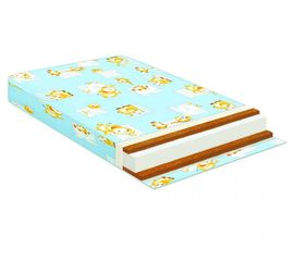 Гигроскопичный воздухопроницаемый двусторонний матрас повышенной жесткости за счет кокосовой плиты с высокими ортопедическими свойствами. Состав: холлкон, кокос. Размер: 119*59*6см Возраст: 0-3 года