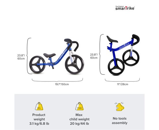 Компактный складной велосипед баланса-это все о веселье и обучении. 2-ступенчатый балансный велосипед настраивается по мере роста вашего ребенка и предлагает раннее начало развития баланса, уверенности и общих моторных навыков, прежде чем научиться ездить на педальном велосипеде. Эргономичное сиденье можно легко отрегулировать под рост и потребности вашего ребенка. Комплект защитного снаряжения входит в каждую покупку!
