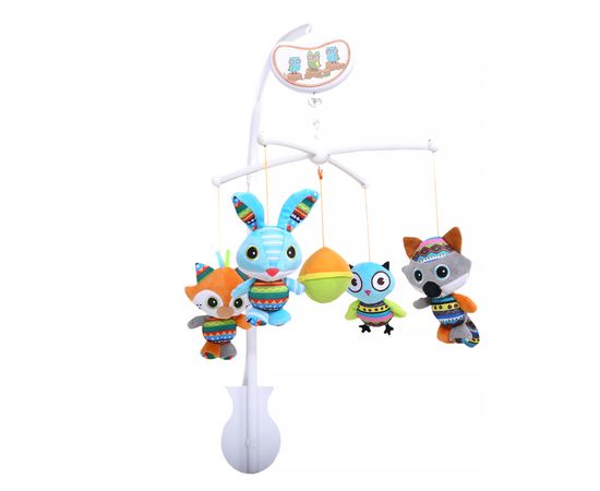 - Музыкальный мобиль с яркими и мягкими набивными игрушками;