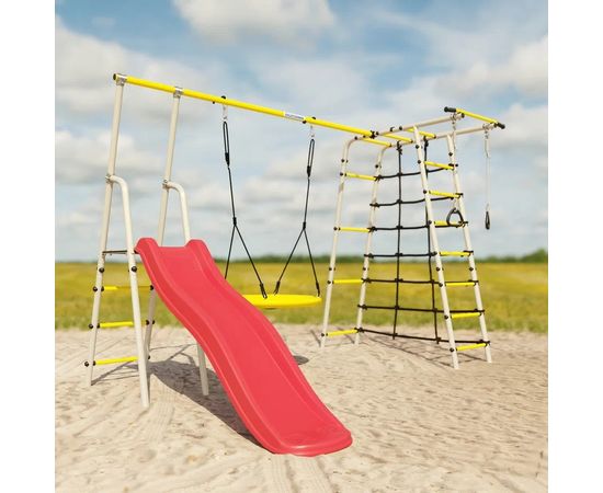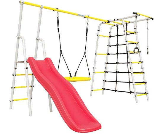 Спорткомплекс обладает внушительными размерами, повышенной устойчивостью и способностью выдерживать нагрузку до 100 кг, что позволяет одновременно играть на нём нескольким детям.