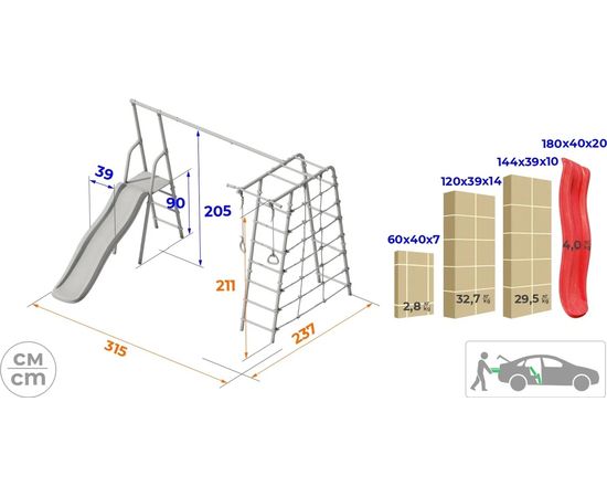 Как и раньше, игровая площадка выполнена из прочного металла 4 мм, покрыта стойкой краской, рассчитанной на то, что оборудование будет использоваться круглый год под открытым небом и будет подвержено осадкам и температурным колебаниям.