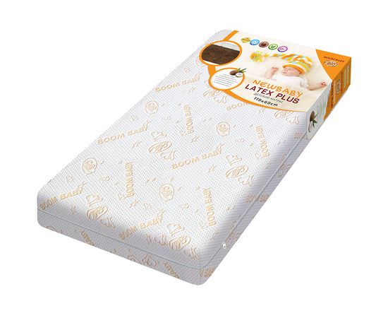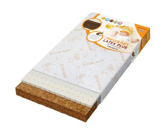 Матрас подходит для стандартной детской кроватки размером 120 х 60 см. Жесткость сторон 3+/5 .Матрас укомплектован съемным чехлом с вшитой для безопасности малыша потайной молнией. Чехол выполнен из брендированного многослойного трикотажа «Boom Baby», обладающего собственной технологической стежкой, что придаёт ему объёма и мягкости. Молния на три стороны, позволяет легко и быстро снять чехол в случае необходимости. Трикотаж не боится деликатной стирки, не усаживается в размере и не теряет своей мягкости и яркости цветов, и будет долгое время радовать Вас и Вашего малыша.Матрас NEWBABY «Latex Plus» обладает двусторонней жесткостью с большим шагом: сторона из биококоса предназначена для малышей с первых дней жизни и, обладая ортопедическим эффектом, поможет сформировать красивую здоровую осанку и укрепить мышцы. Расположенный с нижней стороны слой латекса грамотно распределяет и амортизирует нагрузку, что делает матрас еще более удобным и долговечным. Когда ваш малыш подрастет и захочет спать на более мягкой поверхности, достаточно будет всего лишь перевернуть матрас латексной стороной вверх. Найти более универсальный матрас практически невозможно.С одной стороны матраса используется слой натурального латекса, который давно является одним из самых популярных анатомичных наполнителей в мире. Упругий и приятный на ощупь материал полностью повторяет все изгибы тела, обеспечивая при этом поддержку и правильное расслабление мышц, а также, благодаря системной перфорации и пористости, поддерживает в детской кроватке идеальный микроклимат. Основа матраса – биококос. Это уникальный по своей структуре материал, состоящий из натуральных кокосовых волокон, скрепленных между собой гипоаллергенным полиэфирным волокном нового поколения. Биококос заслуженно пользуется признанием врачей-ортопедов: благодаря повышенной жесткости и упругости, он способствует максимально комфортному сну, осторожно поддерживая еще неокрепшие мышцы спины и позвоночника. Инновационные методы производства позволили сохранить в биококосе все преимущества кокосового волокна: оптимальную жесткость поверхности, дышащую структуру, высокую упругость и сопротивление сжатию. Что не менее важно – данный материал гипоаллергенен и не имеет постороннего запаха. Матрас NEWBABY «Latex Plus» состоит из 2 наполнителей: