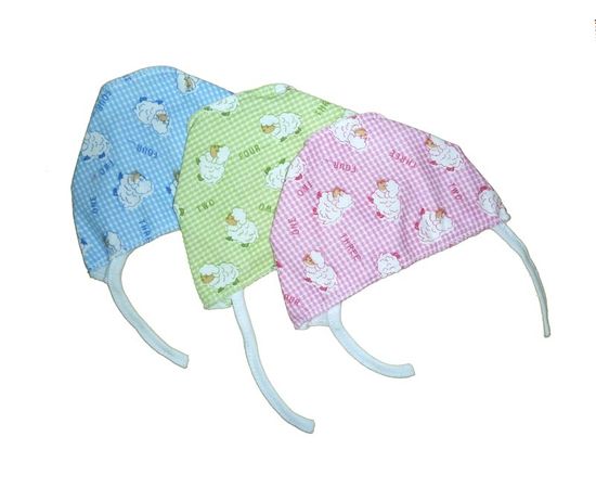 Чепчики - на завязках, отлично после купания, 100% хлопок, швы наружу. Цена за 1 штуку. Цвета в ассортименте - в комментариях к заказу укажите пол малыша - и мы все это обязательно учтем!