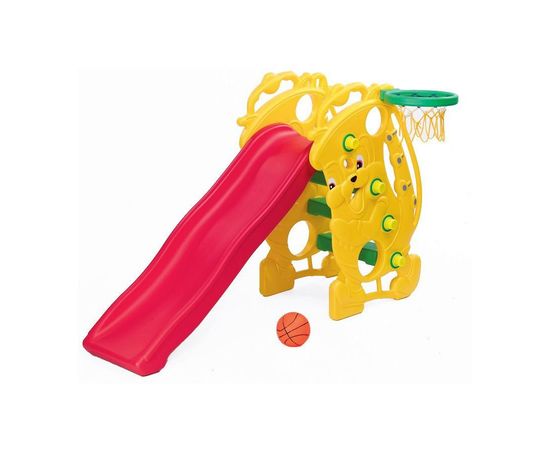Веселая горка Саксофон с баскетбольным кольцом идеально подходит для активных малышей. Безопасные ступеньки с перилами позволят быстро перемещаться по игровому комплексу.