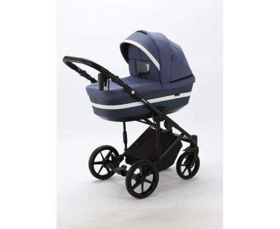 Спальный и прогулочный модули крепятся на шасси последней модификации с регулируемой амортизацией на все колеса, боковыми пружинными блоками. Простая система сложения в один клин с фиксацией колес и блокировкой неконтролируемой раскладки. Лаконичная черная рама подчеркивает простоту и элегантность дизайна. В комплектацию входят традиционный для последних серий Adamex набор аксессуаров и дополнений, включая вместительную сумку для мамы с удобной универсальной ручкой и металлическими держателями.