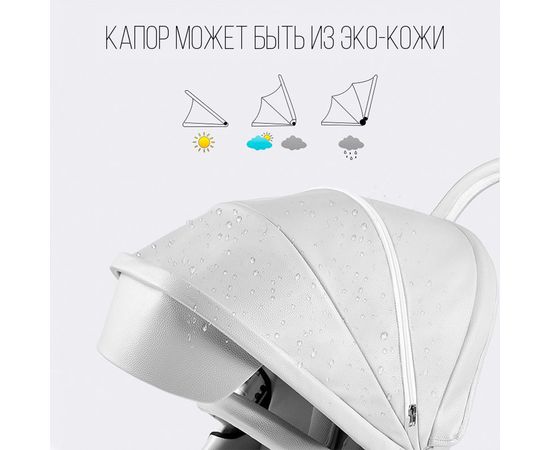 Коляска выполнена в комплектации Комби: люлька ткань, прогулочный блок эко-кожа.