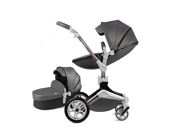 Детская коляска 2в1 Hot Mom 360º F23, экокожа, темносерый