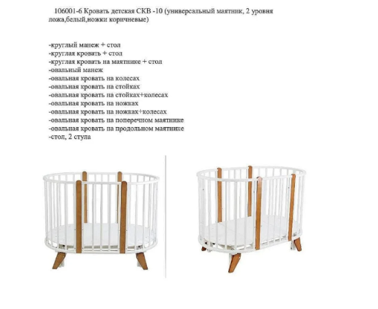 Кроватка детская трансформер круг-овал СКВ Белый-бук универсальный маятник 106001-6