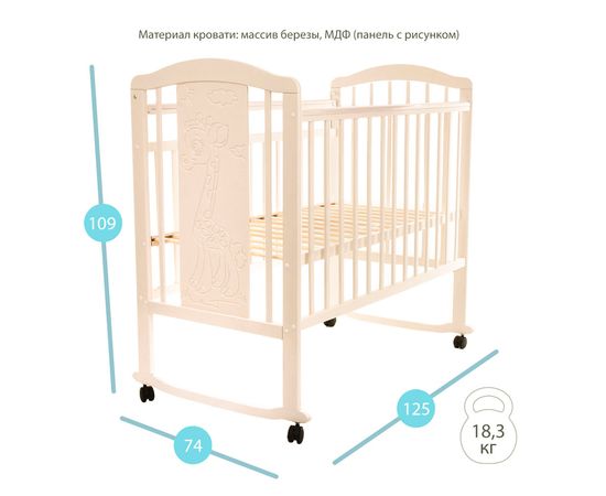 Детская кроватка Pituso Noli колесо-качалка Жирафик Слоновая кость
