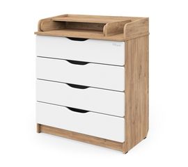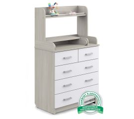 Эргономичный пеленальный комод с отделением для средств по уходу за ребенком. Раскладной пеленальный столик размером 68х52 см. Углы пеленального столика и столешницы комода со скруглением. Корпус комода выполнен из ЛДСП (ламинированной древесно-стружечной плиты) EGGER премиум класса....