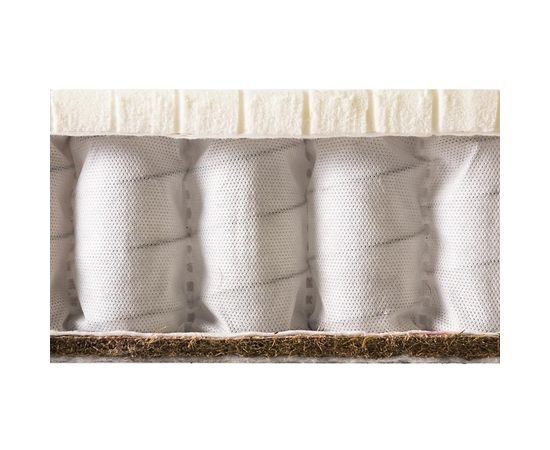 Блок независимых пружин - независимые пружины и слой кокосовой койры обеспечат хорошую поддержку и формирование правильной осанки ребенка в течение всего периода использования матраса. В данном блоке каждая пружина находится в отдельном тканевом мешочке, что обеспечивает правильное распределение нагрузки тела без вовлечения соседних пружин, высокую точечную эластичность и необходимую упругую поддержку тела. Таким образом, позвоночник находится в правильном положении, что позволяет снизить риск возникновения болей в области спины.
