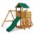 Башня высокая с лестницей, крыша из ткани, горка пластиковая длиной 220 см и высотой 1,2 м., сидение для качелей с регулируемыми канатами, 2 металлических подвеса для качелей с карабинами, 5 ручек в форме камешков для скалодрома, 2 пластиковые ручки, наклонная лестница, вертикальный скалодром, встроенная песочница