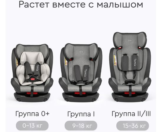 Автокресло Tomix Jasper Isofix - универсальная модель, которая трансформируется под несколько весовых групп и подходит для детей с рождения до 12 лет.