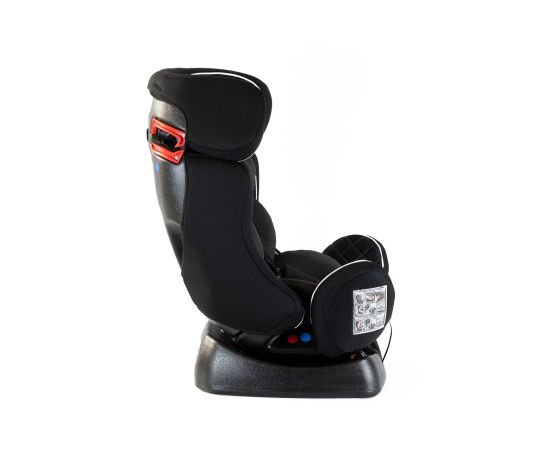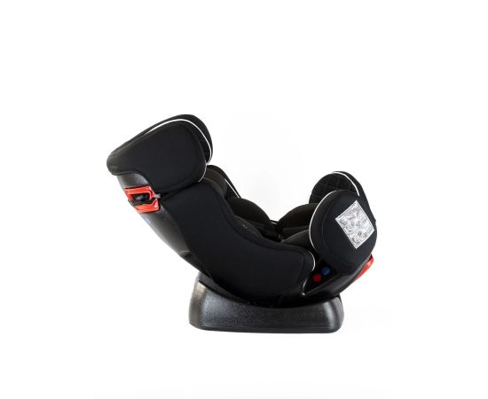 Прочный каркас автокресла изготовлен методом литья под давлением, металлические направляющие предотвращают смещение кресла с базы при столкновении. Крепление в автомобиле с помощью штатных ремней безопасности.