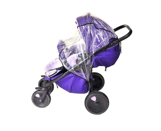Для вентиляции предусмотрено окошко. Дождевик на коляску универсальный изготовлен из качественного материала и подходит для большинства детских колясок.