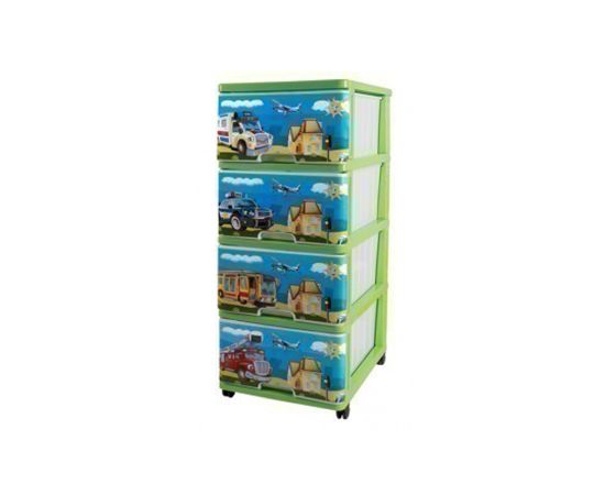 DUNYA Комод с рисунком МАШИНКИ Зеленый