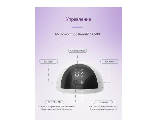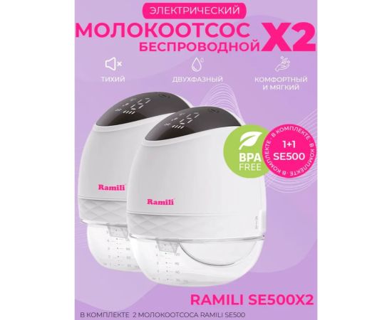 Молокоотсос Ramili SE500X2 компактный и работает без проводов, оснащен самыми передовыми функциями и обладает важными особенностями для комфортного сцеживания в любое время: