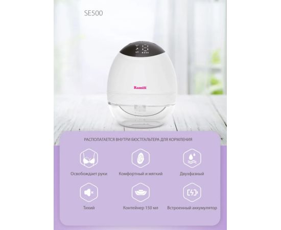 Комфортно использовать на работе или в гостях, на прогулке и где угодно, если это уместно. Ramili SE500X2 лёгкий и компактный, легко разбирается и собирается, легко моется. Теперь не следует беспокоиться о том, что сцеживать молоко вне дома будет неудобно. Вы даже можете положить его в свою дамскую сумочку и использовать везде, не особенно ограничивая себя в движениях.