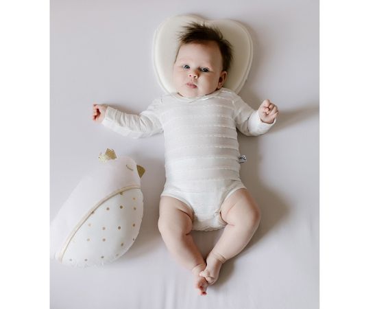 Подушка для новорожденных имеет форму бабочки с отверстием для затылка по центру. Подушка предназначена для сна младенцев на спине с рождения до 6 месяцев.