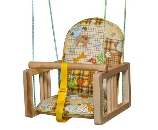 ГНОМ Качели деревянные подвесные мягкое сиденье Собачки