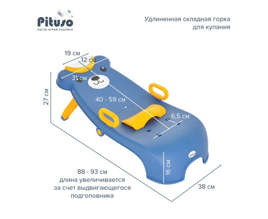 Горка для купания PITUSO превратит процесс купания в увлекательное занятие. Удлиненная складная горка подходит для больших ванн и душевых кабин.