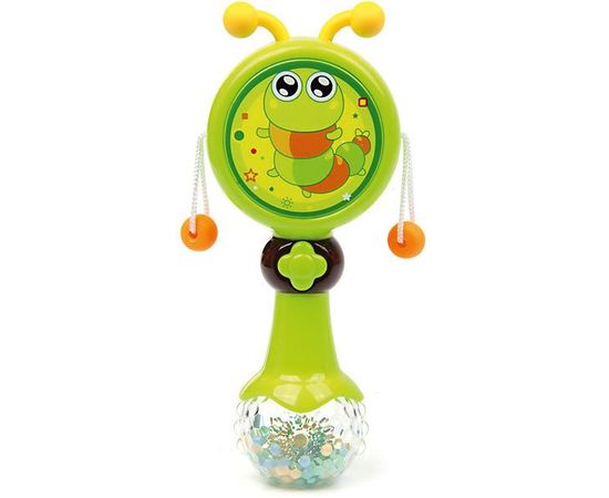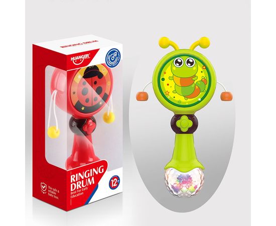 При вращении игрушки бусины на шнурках будут ударять в барабан.