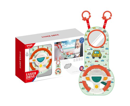 Игрушка содержит: крутящийся руль; кнопки на панели, развивающие мелкую и крупную моторику; большое безопасное зеркало; звуки двигателя и сигнала автомобиля и веселые огоньки.