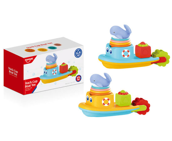 Игрушка в форме катера с 1 игрушкой-рыбкой и 4 стаканчиками в комплекте.