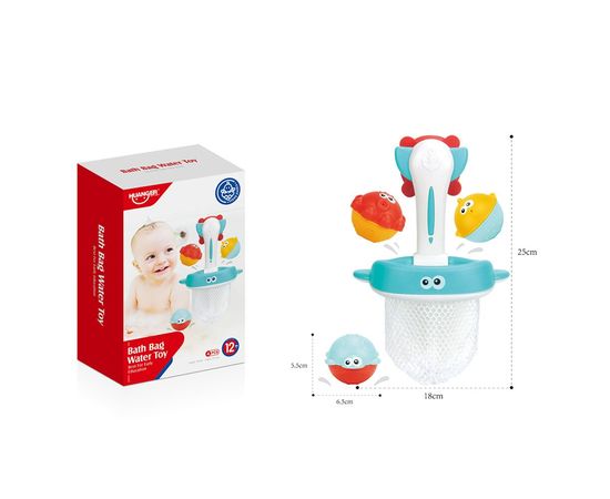 Набор состоит из сачка с присоской и 3 игрушек. Каждая игрушка брызгает водой по-разному.