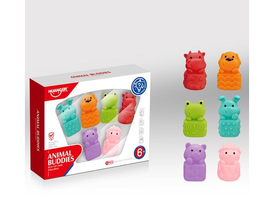 6 сенсорных игрушек разных форм в виде животных надолго займут малыша.