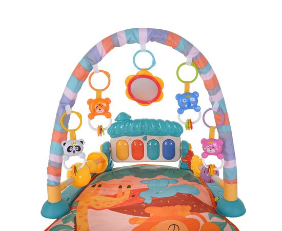 - Коврик имеет интерактивное пианино, которое играет приятные мелодии и имеет световые эффекты.