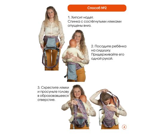 Лямки хипсит-рюкзака Непоседа перекрещены – это самый безопасный вариант ношения. Ребенок не выпадет. Нагрузка на спину взрослого распределяется равномерно. Кроме того - на спине нет застежек, которые многие не способны застегнуть самостоятельно.