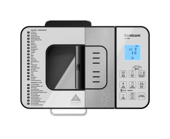 Хлебопечь Ramicom RB8000 — это современное устройство, которое позволяет готовить вкусный и свежий хлеб в домашних условиях. Она оснащена множеством функций и режимов, которые позволяют выбирать различные виды хлеба, а также настраивать параметры выпечки. Заранее подготовлены 23 программы: 16 программ выпечки, 7 программ для подготовки теста. Мощность этой хлебопечки составляет 700 ватт, вы сможете приготовить хлеб от 500 граммов до 1 килограмма, выбрав даже уровень прожарки корочки.