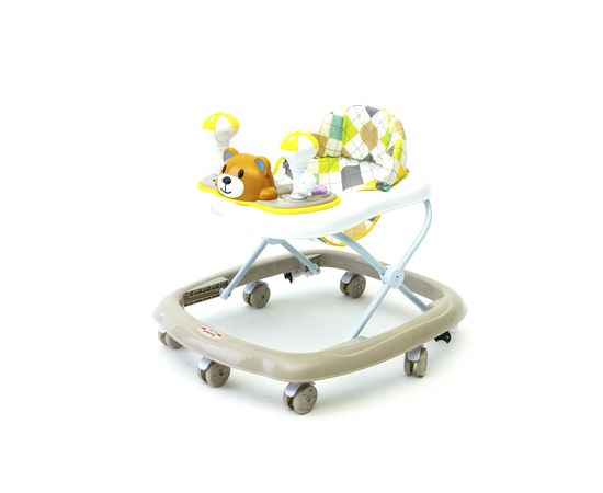 Яркие музыкальные ходунки с милым медвежонком на игровой панели не оставят равнодушными ни малышей, ни их родителей. Возможность регулировки высоты ходунков позволяет выбрать нужное положение под рост ребенка. Мягкое сиденье с высокой спинкой обеспечивает комфорт. Ткань сиденья съемная, что упрощает уход за ходунками. Спереди ходунков располагается игровая панель с музыкальными кнопками, которые подсвечиваются. Малыш может прослушать 3 веселые мелодии. Ходунки компактно складываются и оснащены 7-ю пластиковыми колесами. Есть возможность зафиксировать ходунки с помощью встроенных стопперов.