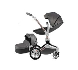 Детская коляска 2в1 Hot Mom 360º F23, экокожа, темносерый