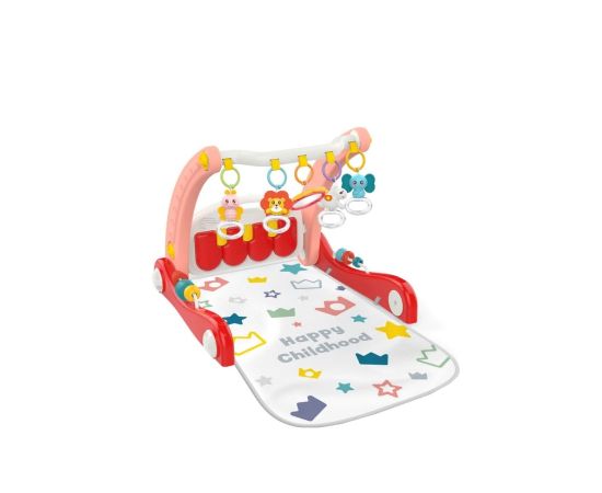 Большое количество подвесных погремушек, музыкальное пианино обязательно завлекут малыша и пробудят в нем естественный интерес, а мягкий коврик обеспечит теплоту и комфорт.
